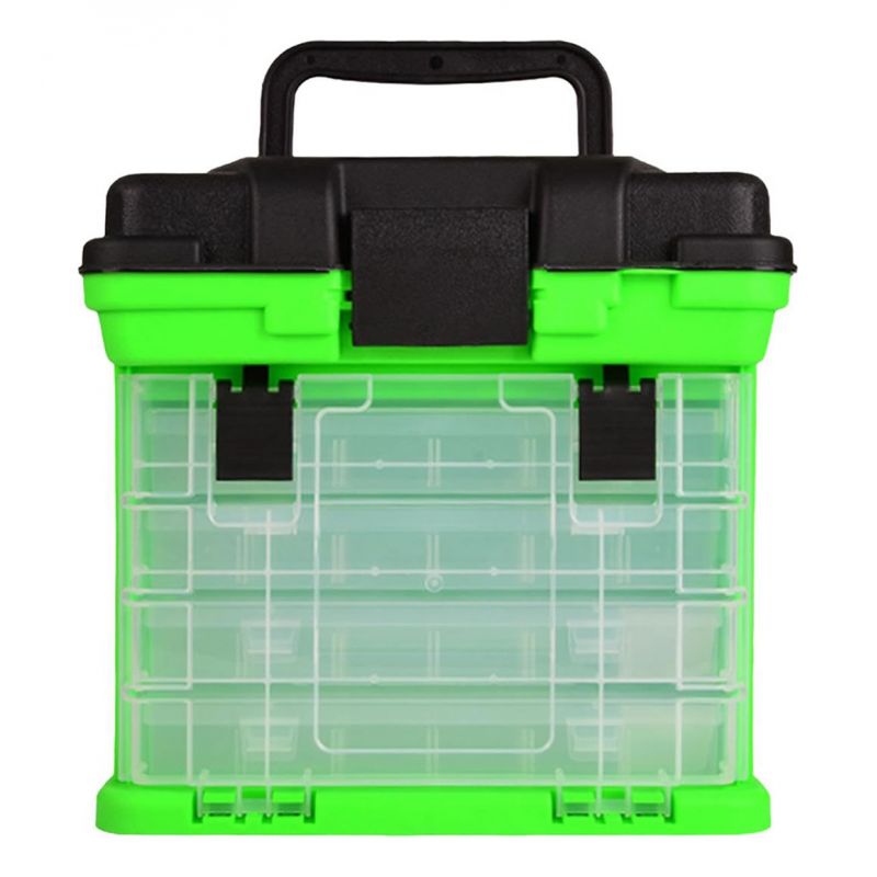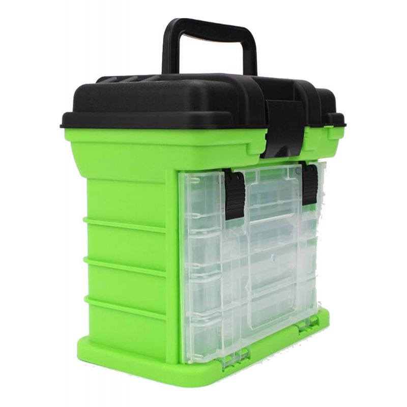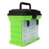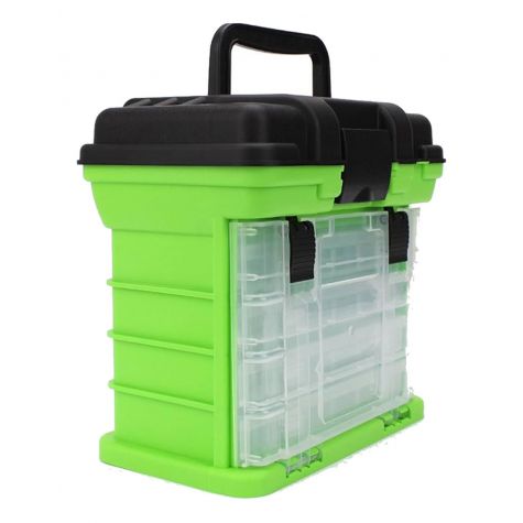 Caja de pesca BANDO gris/verde fluo 27x26x16cm + 4 organizadores c/manija de transporte