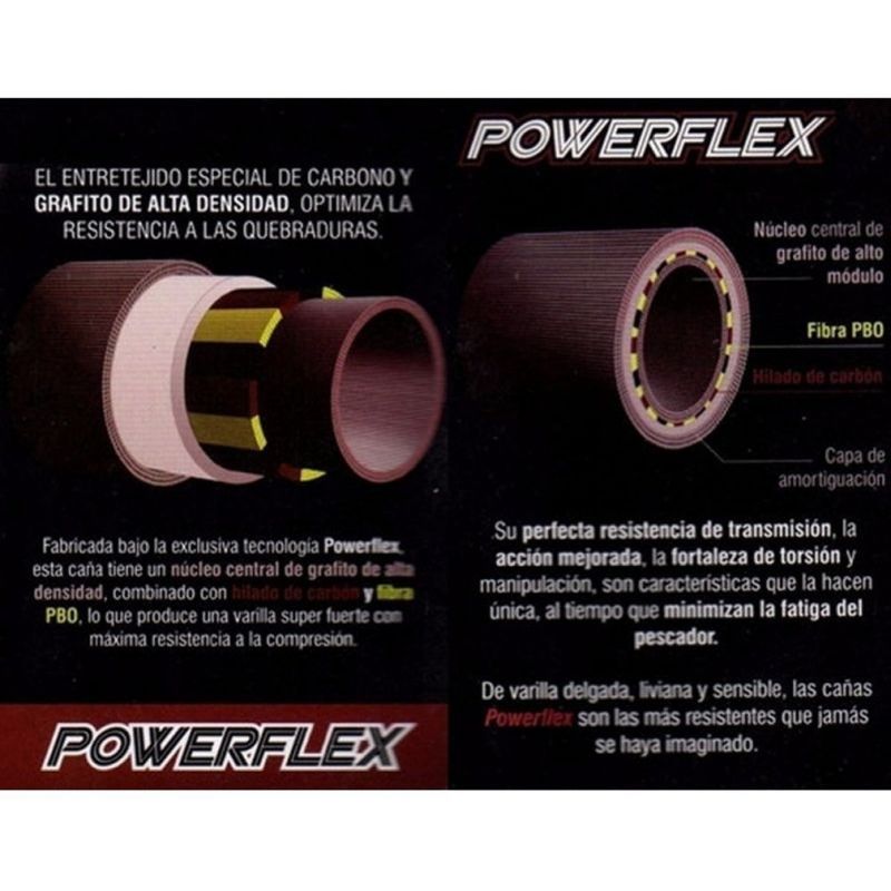 -Tecnología PowerFlex el entretejido especial de Carbono y GRAFITO DE ALTA DENSIDAD, optimiza la resistencia a las quebraduras.