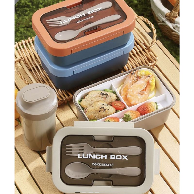 Vianda Tapers Lunch Box de Plástico con 3 Divisiones + Cubiertos - 1200ml AZUL