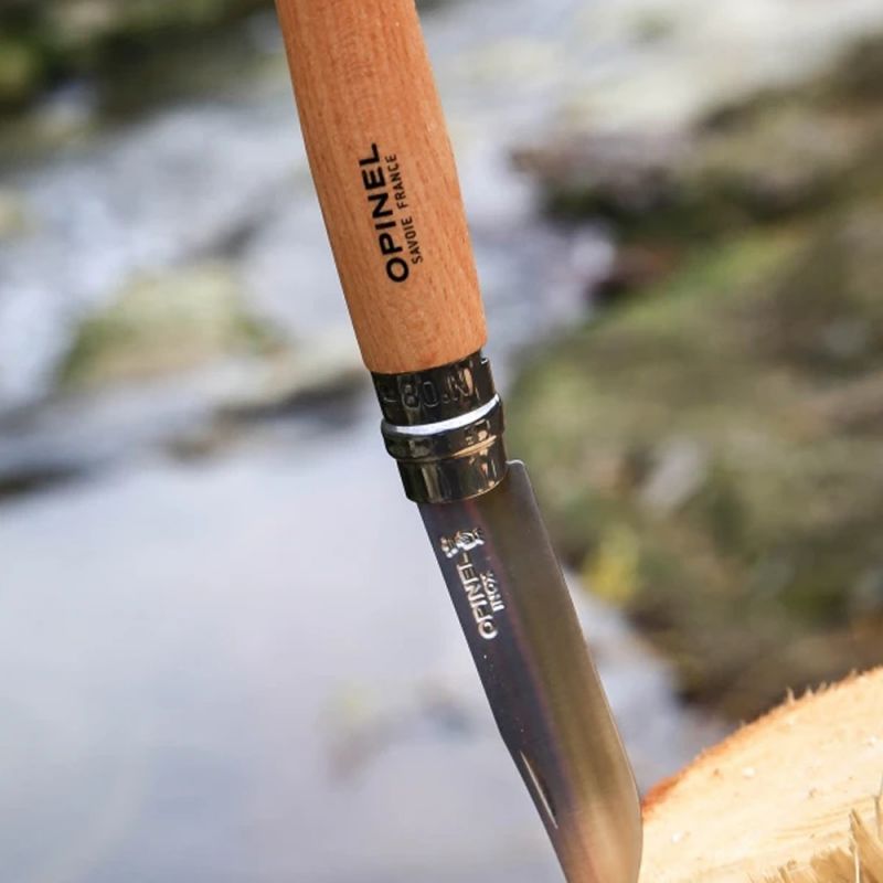El tamaño insignia de la colección de cuchillos de bolsillo de Opinel; el No.08 ha sido presentado en innumerables museos, libros y galerías alrededor del mundo. El cuchillo es compacto y se adapta bien a cualquier tamaño de mano. La hoja de acero inoxidable de 8.3 cm (3 pulgadas) y el mango de madera de haya barnizada resistirán años de uso.