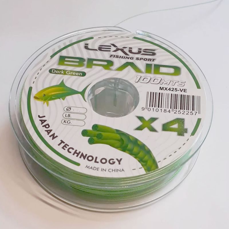 Multifilamento Lexus Braid X 4 Hebras Rollo X 100 Mts Verde Diametro 0.20 Mm