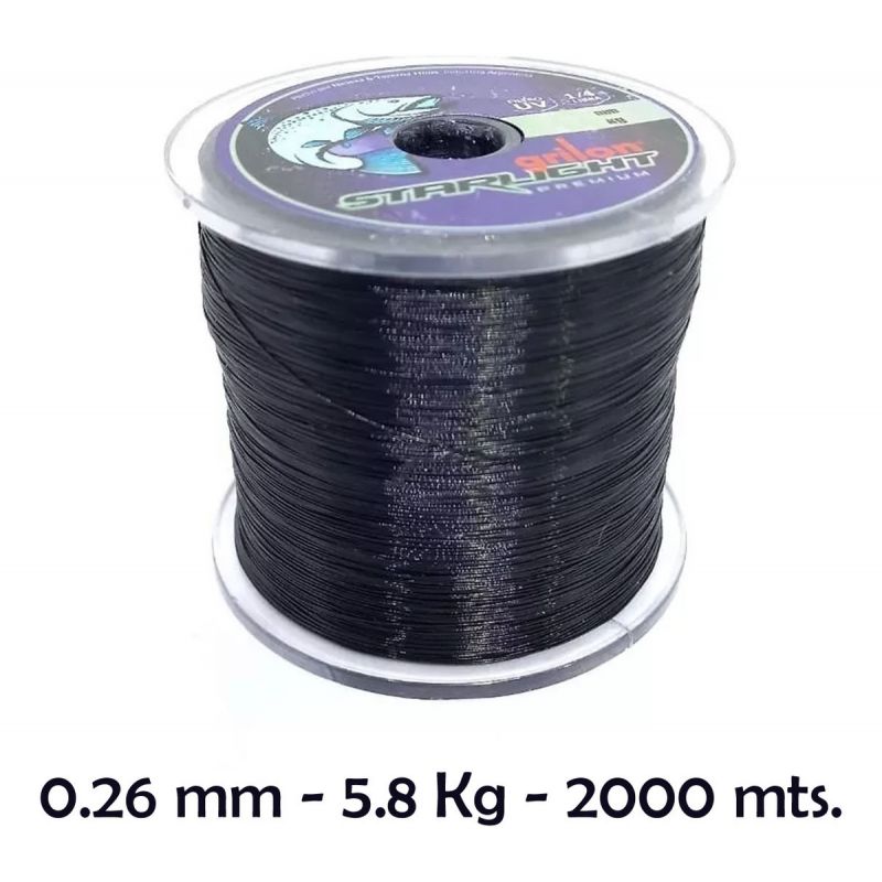 Nylon Starlight para pesca Negro Premium Black 0.26 MM Bobina 1/4 LB
