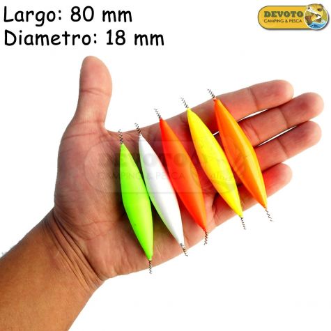 Es una boya que se utiliza tanto para pesca de pejerrey de fondo como de flote.