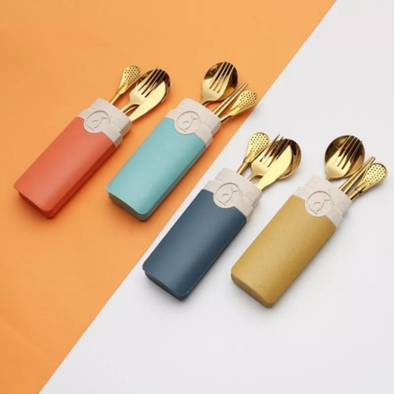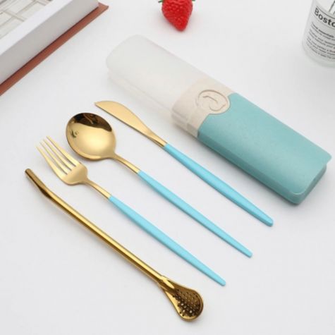 Set Cubiertos Eco Carry Gold Celeste