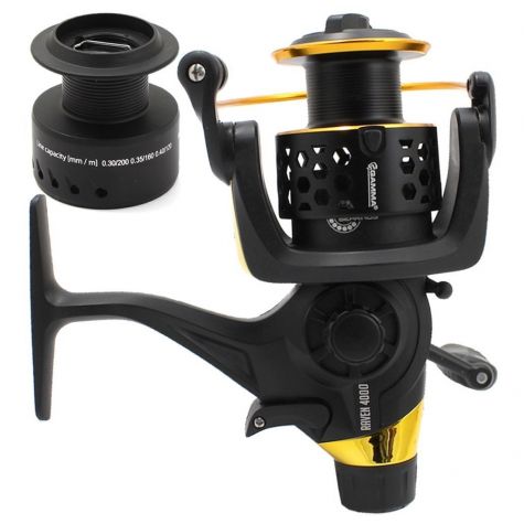El Reel Gamma Raven es un reel especialmente diseñado para carpfishig con un sistema de freno doble, frontal y de cola, con tecla de liberación de carretel, lo que lo hace el reel ideal para la pesca de Dorados, Surubi y Pati gigante con equipos de frontal, ya que permite la liberación de línea para la corrida del pez permitiendo con solo mover la manija que este trabe y accione el freno real del reel, de manera practica y cómoda para el pescador
