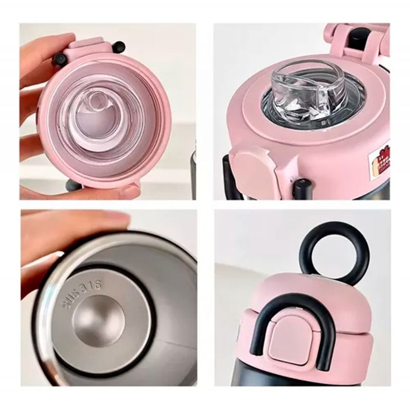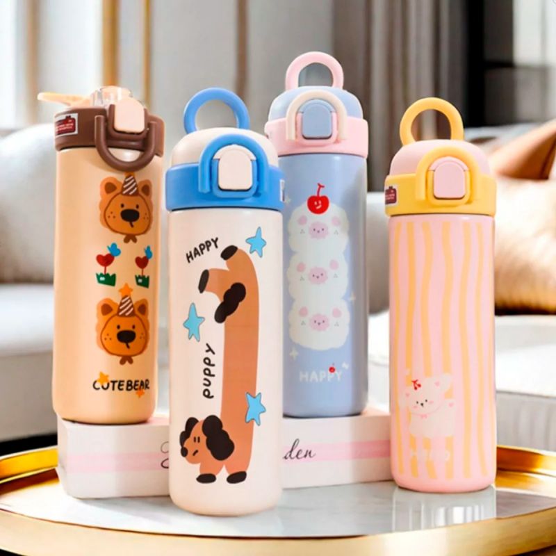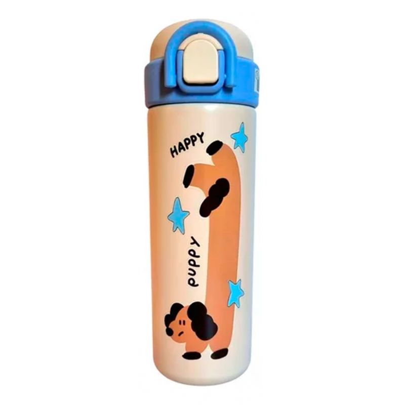 Botella Termo de Acero de Inoxidable con Doble Pico Happy Animals- 500ml Blanco