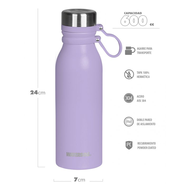 Botella Buho Waterdog Deportiva Acero Inoxidable 600 Cc Rosa Pink Stick