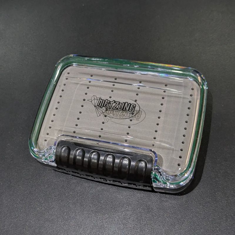 Caja porta moscas Matzuno modelo h0806, diseñada para pescadores que buscan máxima protección y organización. Fabricada en plástico reforzado de alta resistencia con tapas transparentes que permiten visualizar el contenido de ambos lados sin necesidad de abrirla.