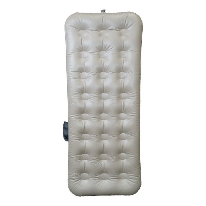 Descansá con comodidad donde sea que vayas con el colchón inflable Camper simple. Diseñado para quienes disfrutan del camping y las escapadas al aire libre, combina ligereza, practicidad y resistencia, siendo la opción ideal para tener un buen descanso en cualquier entorno.