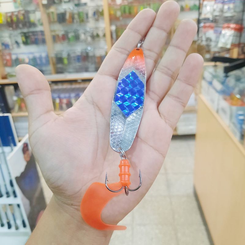 Tiene la particularidad de presentar un centro Azul brillante en el cuerpo de la cuchara lo cual es ideal para dias soleados en aguas claras, el efecto reflejo es muy llamativo.