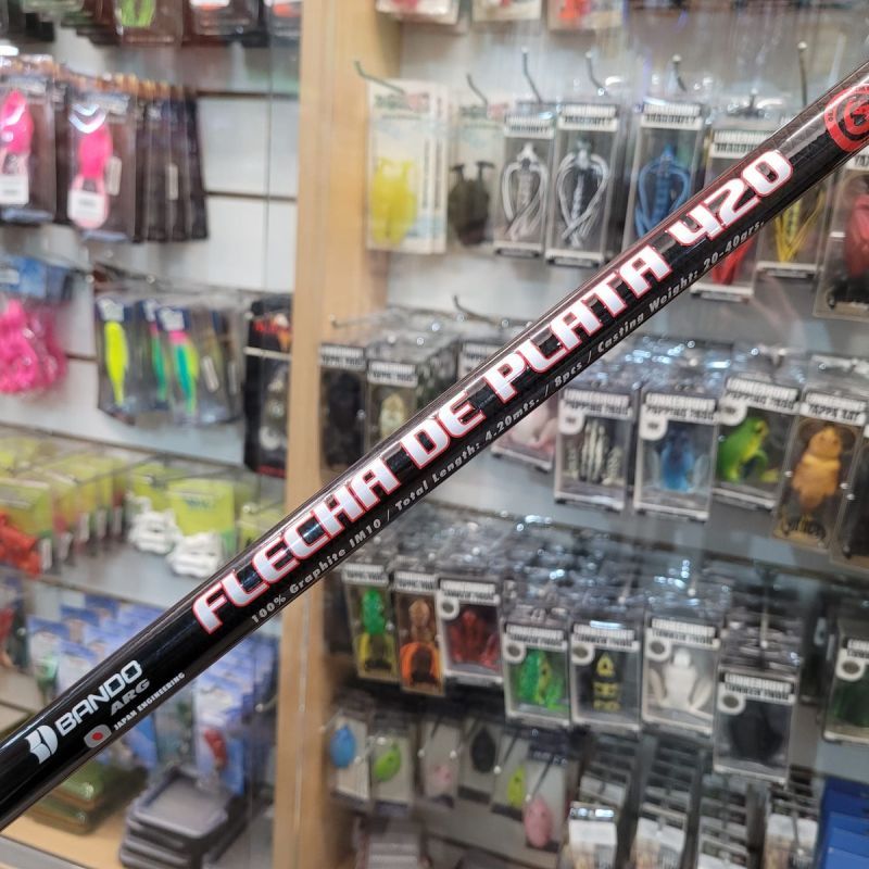 La clasica FLECHA DE PLATA marca Bando, un modelo muy conocido por una gran cantidad de pescadores de pejerrey, por su suavidad al clavar y ser una caña liviana.