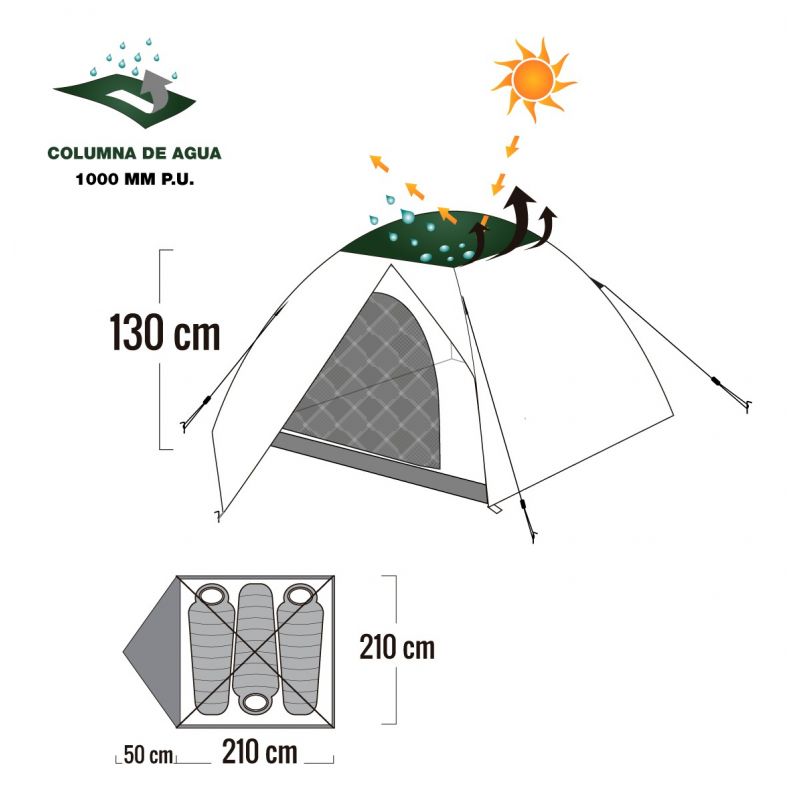 • Medida exterior: 210 x 210 x 130 cm