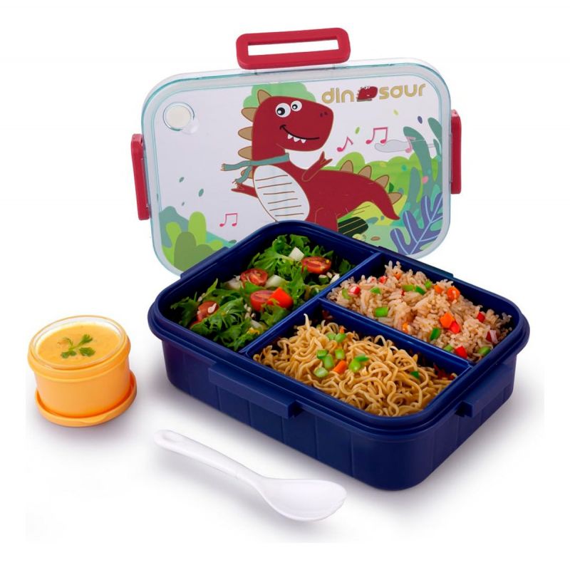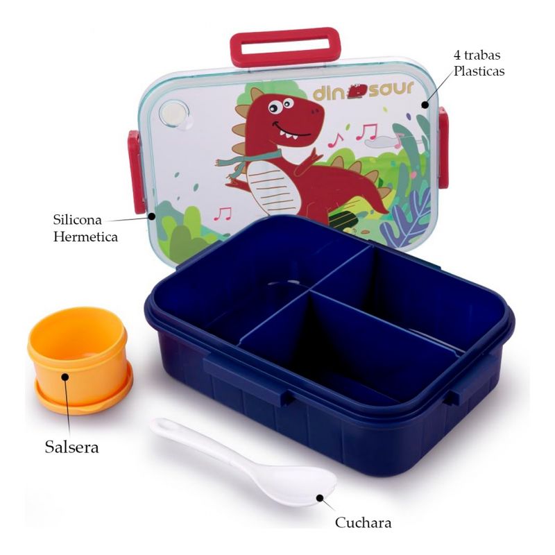 Tapers tupper Lunchera Lunch Box Hermético con 3 Divisiones + Salsero y Cuchara 22,6 x 16,8 x 6,5 Cm Dinosaurio