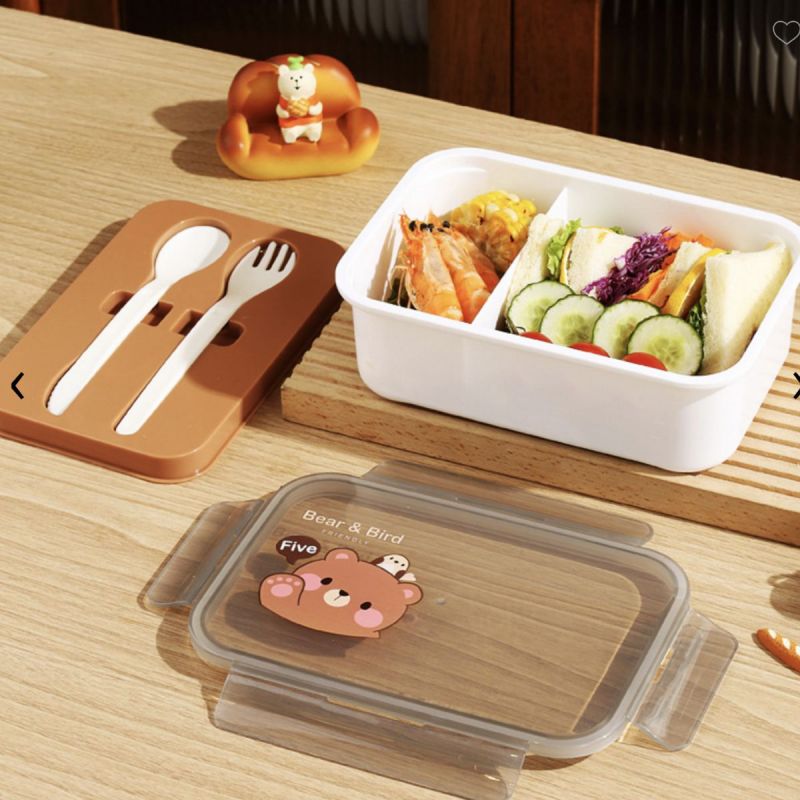 Vianda Tapers Lunch Box de Plástico con 2 Divisiones + Cubiertos - 1200ml NARANJA