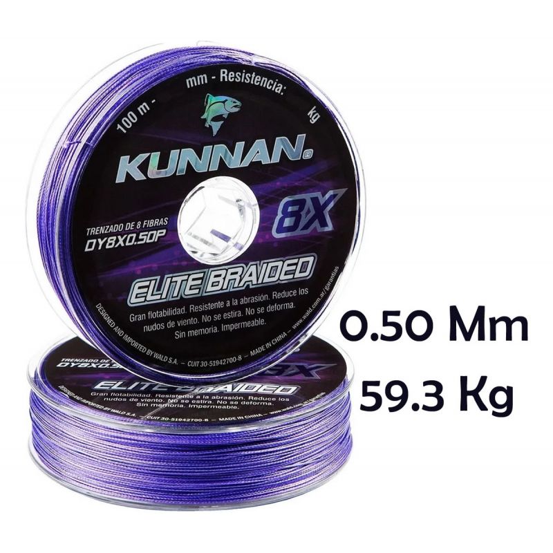 8X ELITE BRAIDED de KUNNAN® es el Multifilamento resultante de la aplicación de última generación tecnológica en el trenzado circular suave de 8 filamentos. Como resultado estas líneas delgadas resisten mayor peso, soportan mejor la abrasión y tienen una alta resistencia a la tirantez extrema. 0% de elasticidad asegura que las líneas no se deforman ni poseen memoria. La durabilidad en el color facilita su visibilidad. Su diseño es óptimo, permitiendo lanzamientos exactos a mayor distancia en condiciones extremas o turbulencias en el mar, ríos y lagos.