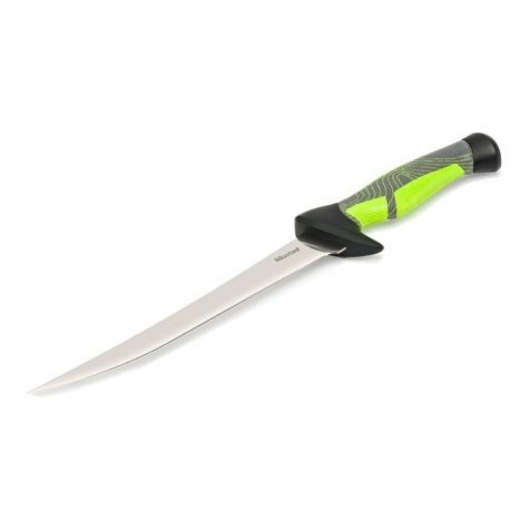 EL cuchillo de filetear Mustad MT Deluxe cuenta con un mango de golf súper suave que proporciona un excelente agarre mientras se filetea. El diseño de la hoja curva proporciona un mejor ángulo de trabajo para cortar lo más cerca posible del hueso para obtener sacar el máximo provecho de su captura. El borde sin cabezales de la hoja permite el uso de toda la hoja y hace que el afilado sea suave y sin esfuerzo.