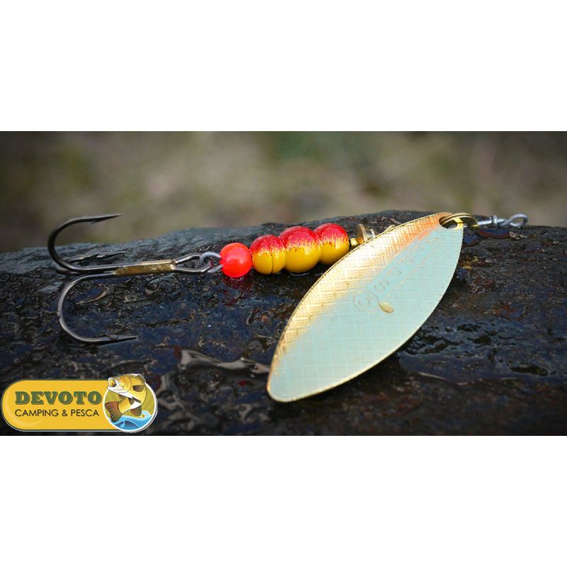 El nombre del señuelo deriva de la forma alargada de su pala, que tiene un desplazamiento de 30° respecto al eje de rotación y ofrece baja resistencia. Cabe destacar que la resistencia varía ligeramente en función de la velocidad de recuperación. Este amplio rango de velocidades aceptables, manteniendo un rendimiento impecable, es el principal secreto de la tasa de captura récord del Aglia Long. Los pescadores experimentados saben lo importante que es acostumbrarse al señuelo y encontrar la recuperación más efectiva. En este aspecto, el Aglia Long no tiene rival, perdonando incluso los errores más graves de los principiantes. Gracias a su ligera resistencia, todos los tamaños de cucharillas son aptos para la pesca a contracorriente. Al mismo tiempo, incluso en lagos, donde a menudo se requiere un giro más lento, la Aglia Long, gracias a su pala de sauce y su mayor peso, mantiene un giro lento y estable incluso en las corrientes más fuertes. Se recomienda para corrientes densas, aguas rápidas y profundas, y para la pesca a contracorriente. También es ideal para lagos donde se buscan depredadores de fondo que no responden a señuelos de movimiento rápido.