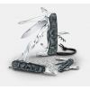 Hoja grande / Hoja pequeña / Sacacorchos / Punzón, escariador y aguja de coser / Tijeras / Sierra para madera / Gancho multiuso / Anilla / Pinzas / Palillo de dientes / Abrelatas / Destapador / Destornillador 3 mm / Destornillador 6 mm / Pela cables
