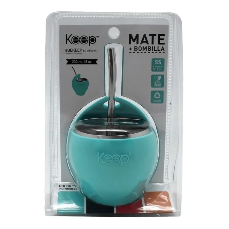 Mate Termico Keep + Bombilla Celeste