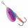 El esquema de colores AGLIA Trout de MEPPS es una incorporación relativamente nueva. No imita una masa de agua específica, sino una combinación de elementos reflectantes que provocan el ataque de los depredadores. La superficie exterior de la hoja se asemeja a la coloración de una trucha de arroyo. Sin embargo, esta no es su principal característica distintiva. Al girar la hoja de esta cucharilla, los colores de imitación se pierden. Simplemente aportan matices distintivos al señuelo en movimiento. El principal elemento reflectante en la superficie exterior de la hoja es un fino cristalino con un 100% de reflexión de la luz. Bajo el agua, múltiples microseñales, características de presas conocidas, provocan aún más a los depredadores. La superficie interior de la hoja es plateada (trucha arcoiris) y dorada (trucha marron). Las pruebas de estos señuelos en aguas dulces han recibido excelentes críticas de numerosos pescadores. Dado que el Rainbow está disponible en todos los tamaños estándar de AGLIA, es apto para la pesca de spinning con la mayoría de las especies.